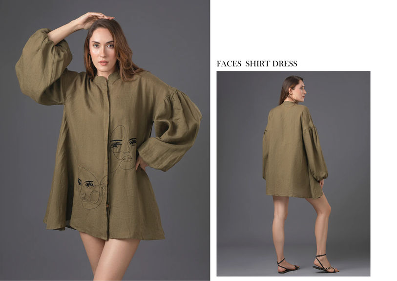 "Faces" Autumn/Winter 2022 collection, a seamless blend of comfort, style, and quality, designed for the modern professional woman aged 18-40. This collection features earthy hues, relaxed fits, and urban chic aesthetics, emphasizing key trends such as puffy sleeves and unique line art embroidery. Key pieces include versatile dresses, crop tops paired with shorts, and crop tops with pants, catering to middle to upper-middle class urban and suburban dwellers.